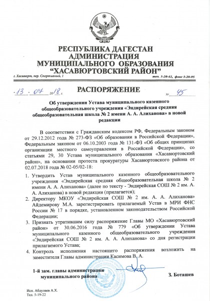 Приказ о проведении плановой выездной проверки МКОУ Эндирейской СОШ №2
